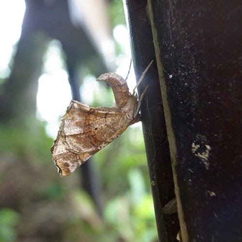 この肩パッドを入れたような形のスズメガは初見。写真ではよく見たことがあるが、前翅が奇妙な形をしているとばかり思っていた。突起部分は後翅がはみ出しているとは・・・。実物を見て納得。